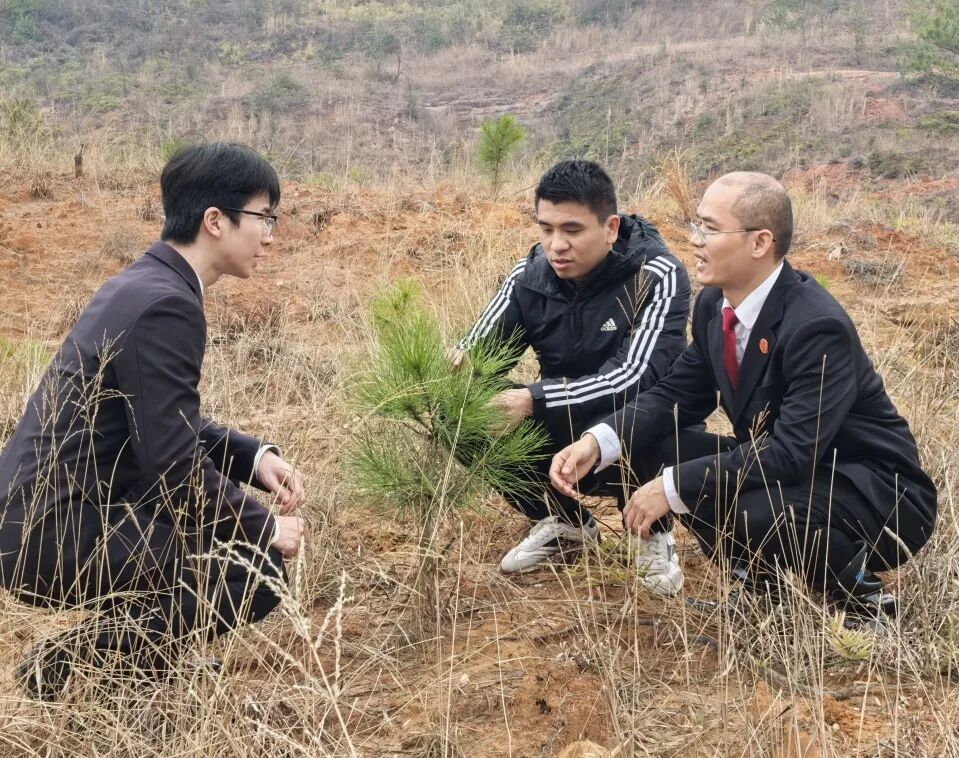 2025年3月12日,贵溪市人民检察院联合市法院、市林业局等单位,前往生态修复司法实践基地,对一起失火刑事附带民事公益诉讼案的现场恢复情况进行回访,树苗长势良好。